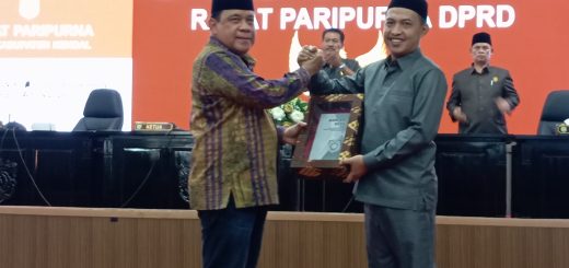 Di akhir acara Henry memberikan berkas penetapan calon terpilih kepada pasangan Hendrar Prihadi dan Hevearita Gunaryanti. (is)