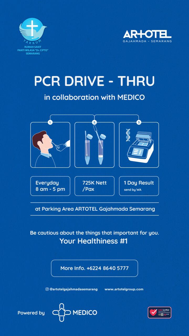 Dalam pembukaan layanan ini, Artotel berkerja sama dengan RS Panti Wilasa “Dr. Cipto” Semarang dan Medico. Layanan PCR Drive Thru ini berlokasi di parking area Artotel Gajahmada Semarang, mulai dari jam 8 pagi hingga jam 5 sore.
