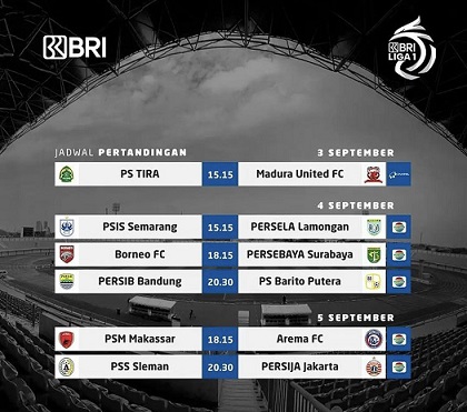 - PS Tira vs Madura United, Jumat (3/9), Pukul 15.15.