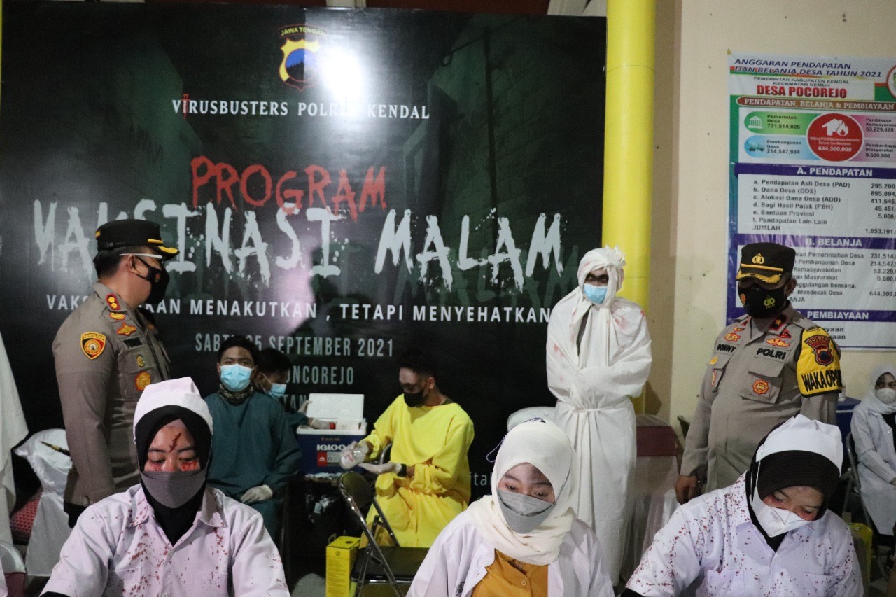 Unik, Polres Kendal Adakan Vaksinasi Malam Dengan Tema Horor