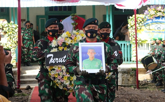 KENDAL (Awal.id) – Kepala Staf Angkatan Darat (Kasad) Jenderal TNI Dudung Abdurachman melakukan prosesi pemakaman Prajurit TNI AD Sertu Ari Baskoro yang telah gugur oleh Kelompok Kriminal Bersenjata (KKB), Senin (22/11).
