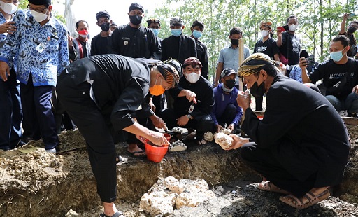 BLORA (Awal.id) – Gubernur Jawa Tengah, Ganjar Pranowo didampingi Bupati Blora, Arif Rohman menghadiri peletakkan batu pertama pembangunan tandon air Desa Kelopoduwur, Blora, Rabu (10/11). Tiba pukul 09.00 WIB, rombongan disambut hangat oleh Sedulur Sikep Samin dengan penuh sukacita.