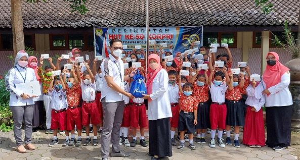 Penyerahan ini diikuti seluruh siswa dari kelas I hingga kelas VI SD N Manisharjo 02 Bendosari Sukoharjo yang berjumlah kurang lebih 41 siswa.