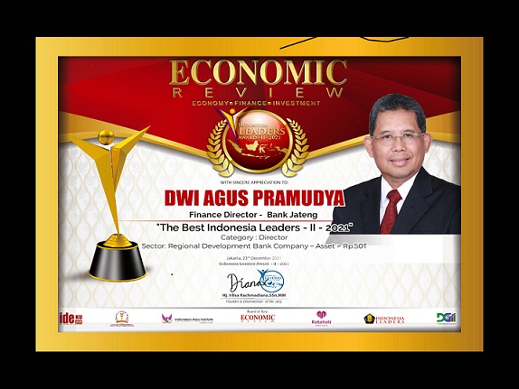 SEMARANG (Awal.id) – Jajaran PT Bank Pembangunan Daerah (BPD) Jawa Tengah atau Bank Jateng patut berbangga hati. Pasalnya, Direktur Keuangan Bank Jateng, Dwi Agus Pramudya berhasil meraih penghargaan Indonesia Leader Award (ILA) 2021 dari Economic Review untuk katagori Director-Bank Private Company.