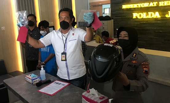 “Pelaku berpura-pura menjadi pembeli, kemudian pelaku langsung menodongkan senjata dan melakukan kekerasan ke korban untuk menyerahkan semua uang yang ada di meja kasir. Korban sempat berontak, dan pelaku sempat membungkam mulut pelaku. Namun pelaku berhasil menggondol uang sebesar Rp 400 ribu kemudian melarikan diri,” jelas Djuhandani saat memimpin Konferensi Pers di Lobi Ditreskrimum Polda Jateng, Kamis (16/12).