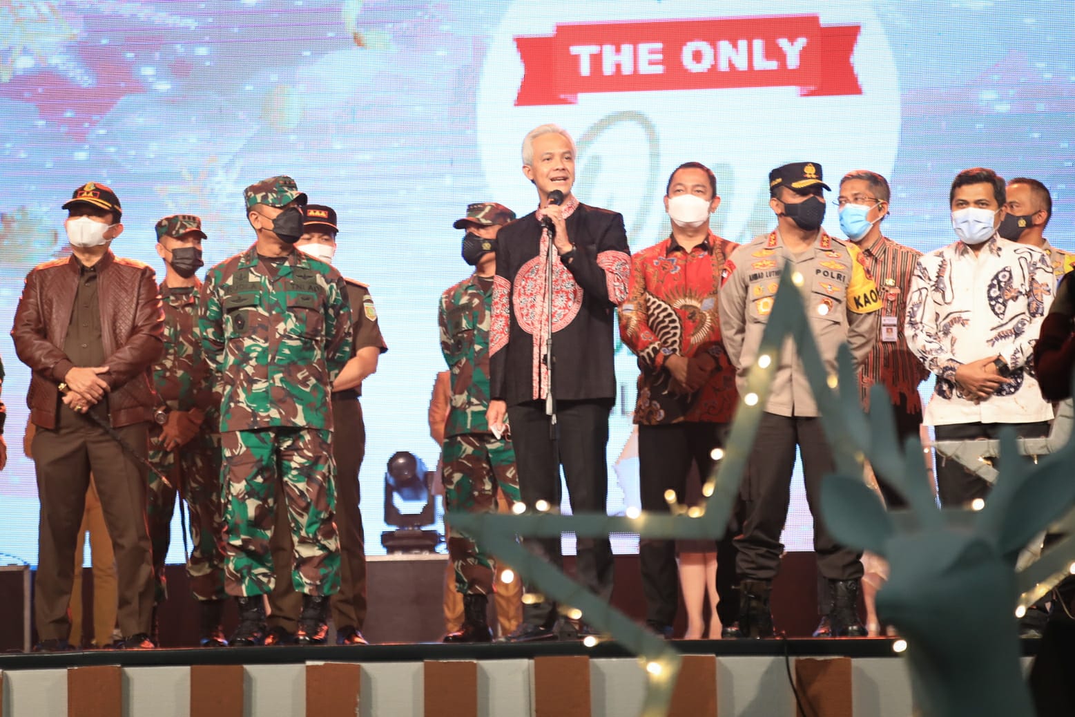 “Bapak ibu yang saya hormati, ini tahun ketiga bapak ibu merayakan Natal. Suasananya masih dalam kondisi pandemi. Rasanya memang tidak enak tapi kita harus melakukan itu. Maka kami datang ke sini untuk ikut bergembira. Silakan merayakan Natal, biar kami yang menjaga. Mudah-mudahan ini menjadi cara kita untuk saling bersuka cita. Sampaikan salam saya untuk keluarga. Cukup dengan berdoa saja, pokoknya i love you full,” kata Ganjar pada para jamaah di Holy Stadium.