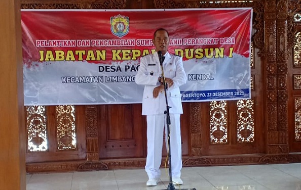KENDAL (Awal.id) – Pemerintahan Desa Pagertoyo, Kecamatan Limbanga, Kendal melantik perangkat desa dengan jabatan Kadus 1 Dusun Krajan, Desa Pagertoyo, Kamis (23/12).
