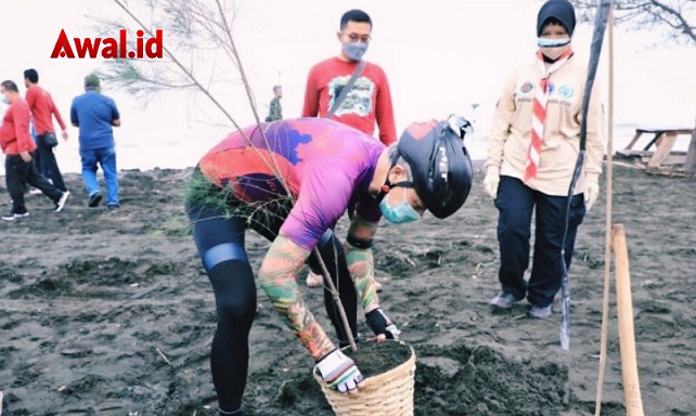 Sambil Gowes, Gubernur Ganjar Ikut Tanam Ratusan Pohon Cemara Laut di Pantai Tirang Semarang