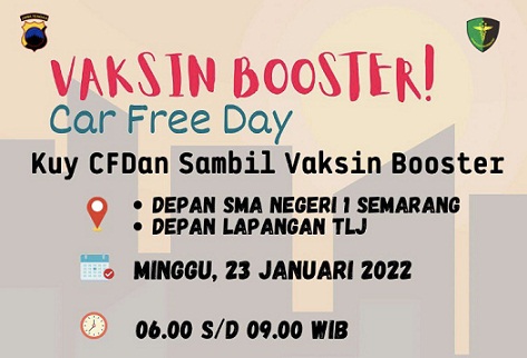 SEMARANG (Awal.id) – Polda Jateng melalui Bidang kedokteran dan kesehatan (Biddokkes) akan menggelar vaksinasi Booster massal saat Car Free Day (CFD) di Kota Semarang, Minggu besok (23/1).