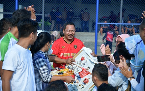 SEMARANG (Awal.id) – Forum Wartawan Kota (Forwakot) Semarang memberikan hadiah kejutan di Hari Ulang Tahun (HUT) Wali Kota Semarang Hendrar Prihadi saat akan melakukan pertandingan fun sepak bola antara 525 FC melawan Jurnalis FC di The Arena Stadium, Jl Suratmo Manyaran, Rabu (30/3).
