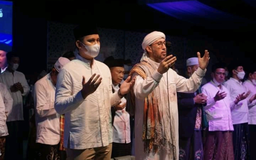 KENDAL – Bupati Kendal Dico M Ganinduto, bersama Wakil Bupati Kendal, H. Windu Suko Basuki, hadiri acara NU Kendal Bersholawat dalam rangka Harlah Nahdlatul Ulama ke-96, Jumat (4/3/2022) di Stadion Utama Kebondalem Kabupaten Kendal.