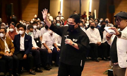 Kedatangan Erick dalam rangka ‘Perwira Talks with Menteri BUMN Erick Thohir’ di Gedung Grha Pertamina, Jakarta Pusat, Senin (18/4) disambut langsung oleh Direktur Utama Pertamina Nicke Widyawati, Basuki Tjahaja Purnama dan Presiden Federasi Serikat Pekerja Pertamina Bersatu Arie Gumilar. Hadir juga jajaran direksi dan manajemen Pertamina baik dari holding maupun subholding.