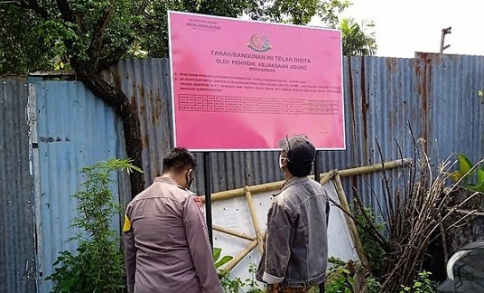 “Tadi petugas dari Kejaksaan Agung dan pihak-pihak terkait datang ke sini. Kami diminta untuk menyaksikan secara langsung bahwa di situ disita oleh negara dan diberi plakat,” katanya.