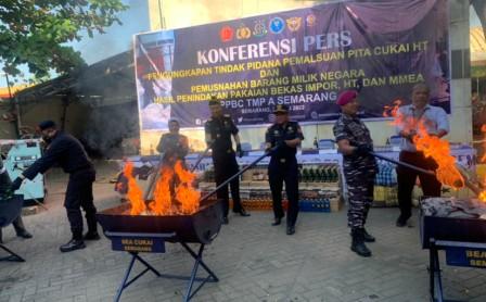 Tak hanya itu, lanjutnya, dalam kegiatan ini juga dilakukan pemusnahan terhadap barang milk negara (BMN) berupa 222 ball pakaian bekas, 1.592.332 batang rokok ilegal, 3.900 gram tembakau iris, dan 358,37 liter minuman mengandung alkohol (MMEA).