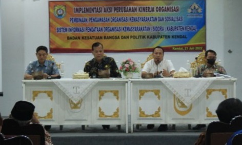 KENDAL (Awal.id) – Badan Kesbangpol Kendal melakukan pembinaan dan pengawasan kepada organisasi kemasyarakatan, dan melakukan sosialisasi Sistem Pendataan Organisasi Kemasyarakatan (SIDORA), di Gedung Abdi Praja Kabupaten Kendal, Kamis (21/7/2022)/