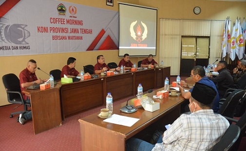 SEMARANG (Awal.id) – KONI Jawa Tengah mengadakan ‘Coffee Morning’ dengan menghadirkan beberapa jurnalis peliput olahraga, di Kantor KONI Jateng, Kompleks Gelora Jatidiri Semarang, Jumat, (22/7).