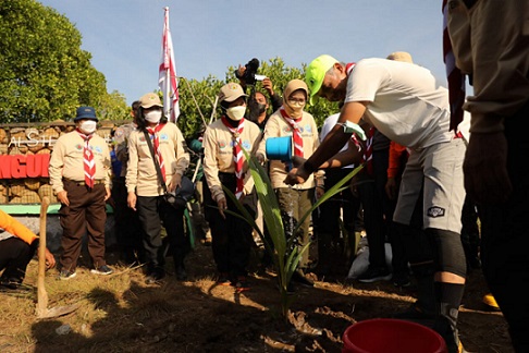 Pada kesempatan itu, Gubernur Jateng Ganjar Pronowo dan Pramuka Kwartir Daerah (Kwarda) Jawa Tengah terjun langsung ke lapangan untuk ikut menanam pohon mangrove dan cemara laut guna mengantisipasi abrasi laut yang terus menerus menggerus bibir pantai laut Pulau Jawa.