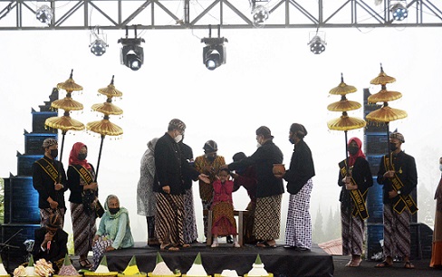 Upacara Pencukuran Rambut Anak Rambut Gembel dan Ngalab Berkah di Kompleks Candi Arjuna, Dieng