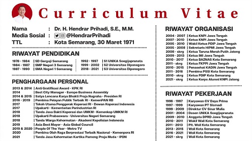SEMARANG (Awal.id) – Dr H Hendrar Prihadi SE MM merupakan Wali Kota Semarang yang menjabat sejak tahun 2013. Pria yang akrab disapa Hendi ini lahir pada tanggal 30 Maret tahun 1971 di Kota Semarang, sebagai anak ke-10 dari 10 bersaudara dari pasangan bapak Sunarso dan ibu Sunarti.