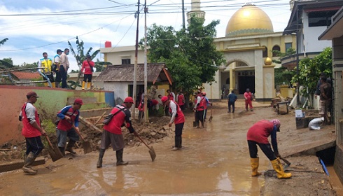 Pasca banjir bandang tersebut, fasilitas umum di Perumahan Wahyu Utomo dipenuhi hamparan lumpur dan sampah.