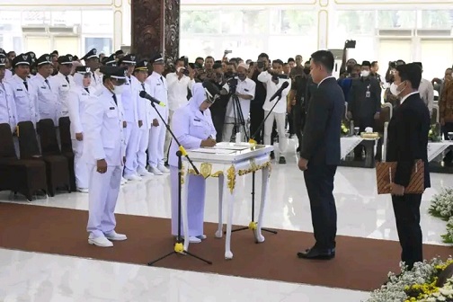 KENDAL (Awal.id) – Bupati Kendal Dico M Gainduto melantik 62 kepala desa dari 19 Kecamatan se-Kabupaten Kendal, di Pendopo Tumenggung Bahurekso, Kamis (8/12).