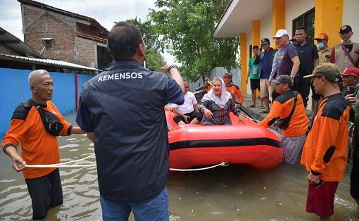 Bertempat di lobby Kementerian Sosial yang diwakili oleh Dirjen Kemensos menyerahkan bantuan untuk penanganan korban banjir kepada Pemerintah Kota Semarang. Adapun bantuan yang diberikan berupa kasur, makanan siap saji untuk orang dewasa dan anak-anak, alat masak, hingga perahu karet.