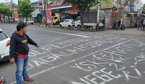 Sementara seorang warga, Surono mengatakan, saat Handoko mencoret coret jalan raya, dirinya sempat mengingatkan, namun pelaku malah kabur.