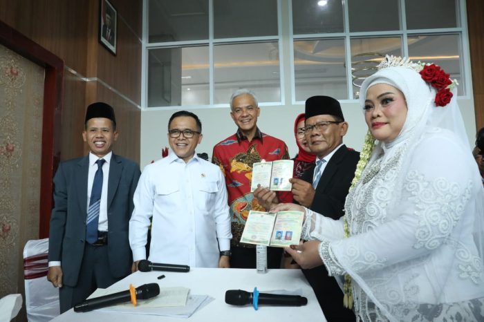 Bahagianya Pasangan Lilik-Triyani, Gubernur Ganjar dan Menpan-RB Jadi Saksi Pernikahannya di Balai Nikah MPP Sragen