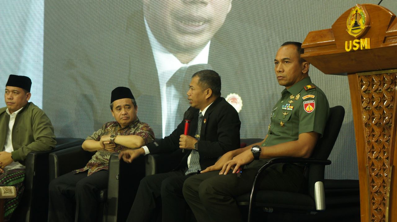 Dalam dialog yang dipandu Roshia Martiningrum itu, bertindak sebagai keynote speaker acara ini disampaikan oleh Menkopolhukam yang juga adalah Ketua Dewan Penyantun USM Prof Dr Mahfud MD SH SU MIP.