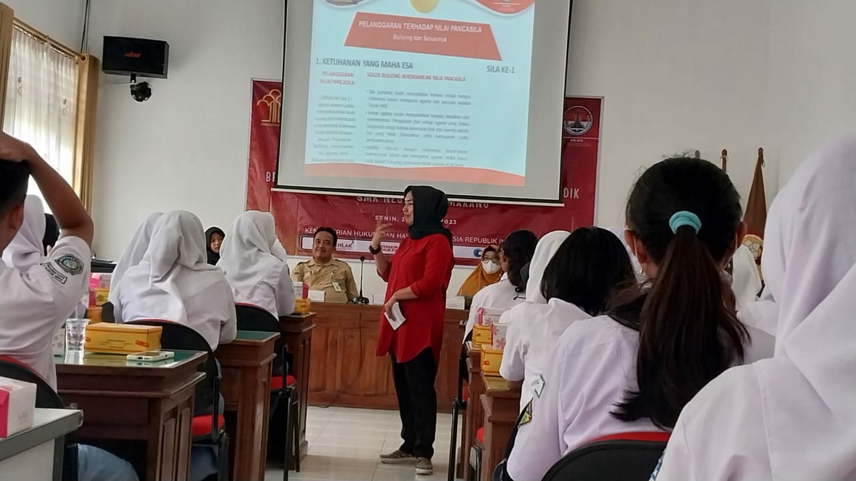 Kegiatan mengangkat tema “Sosialisasi Pencegahan Tindak Pidana Bullying Berdasarkan Nilai-Nilai Pancasila”. Kegiatan yang dibuka Wakil Kepala Sekolah SMK Negeri 2 Semarang, Heru Septiadi itu diikuti 30 peserta.