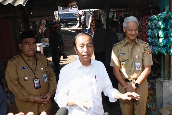 Kehadiran dua pemimpin asal Jawa Tengah itu disambut hangat para pedagang dan warga yang berada di pasar. Selain mengecek kestabilan harga, Jokowi dan Ganjar juga memastikan ketersediaan bahan pokok.