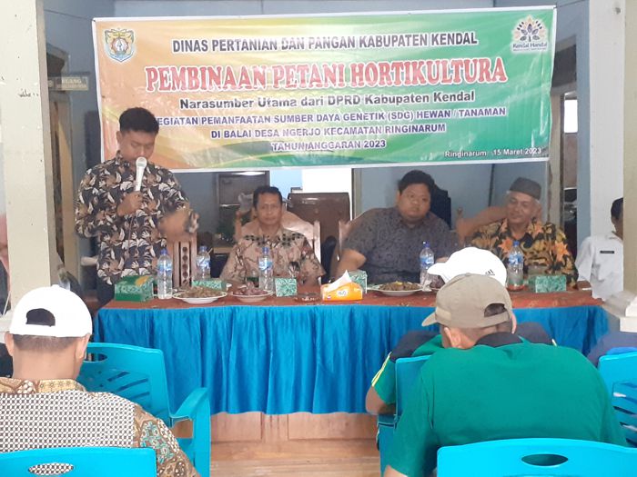 Pelatihan diberikan pada kegiatan Pembinaan Petani Hortikultura yang diselenggarakan Dinas Pertanian dan Pangan Kabupaten Kendal bersama anggota DPRD Kendal Komisi B di balai desa Ngerjo Kecamatan Ringinarum, Rabu (15/3).