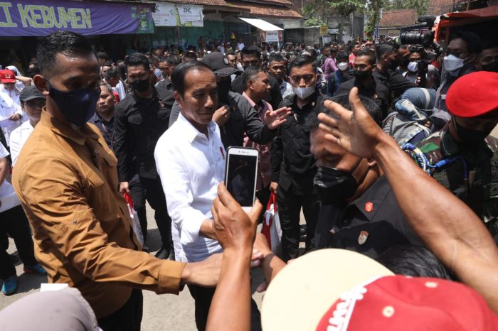KEBUMEN (Awal.id) – Ratusan masyarakat sekitar Pasar Petanahan, Kabupaten Kebumen girang menyambut kedatangan Presiden Joko Widodo dan Gubernur Jawa Tengah Ganjar Pranowo, Kamis (9/3).