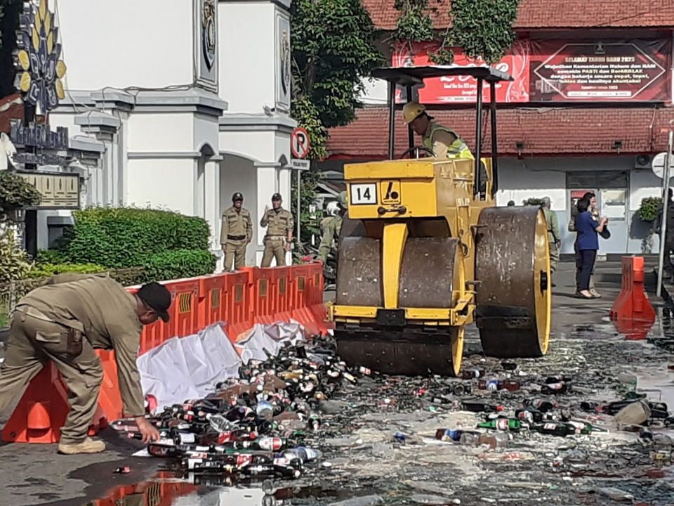 Ribuan Botol Miras Dimusnahkan di Alun-alun Kendal