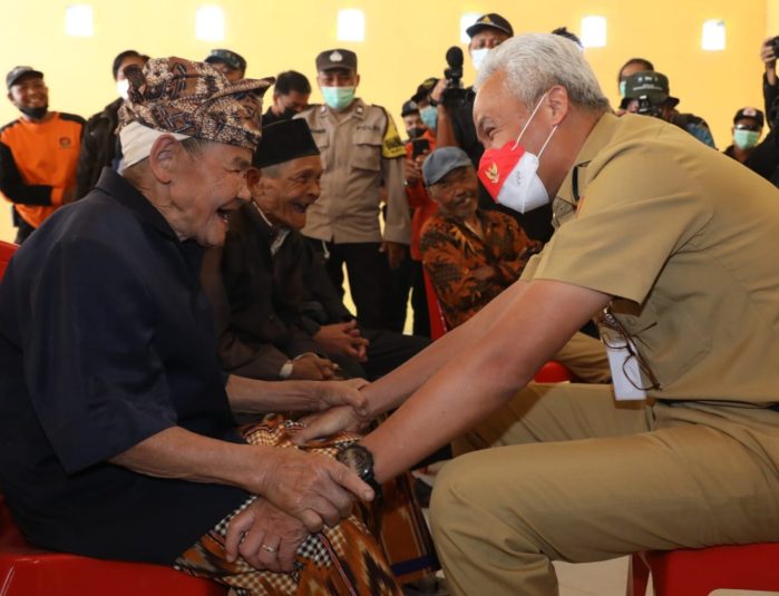 Suasana di balai desa pun penuh sukacita. Meski kesulitan mendengar, hal itu tak membatasi interaksi Ganjar dan Mbah Darto. Keduanya justru hanyut dalam obrolan layaknya kakek dan cucu kandung.