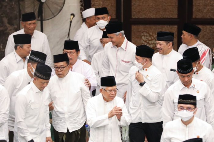 “Pak Ma’ruf Amin pengen salat tarawih bersama MUI, Baznas, dan seluruh takmir Masjid Baiturrahman sekaligus melihat wajah baru Masjid Baiturrahman,” kata Ganjar usai salat tarawih.