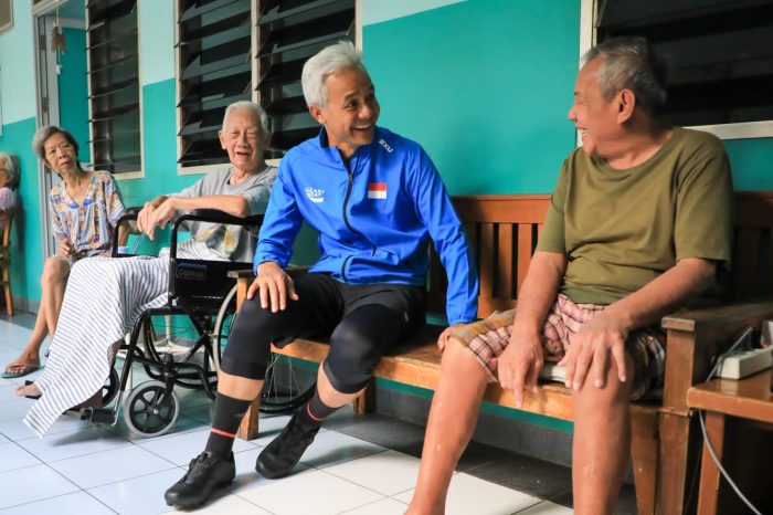 SEMARANG (Awal.id) – Suasana hangat dan penuh tawa tersaji saat Gubernur Jawa Tengah, Ganjar Pranowo, bertemu dan berdialog dengan para lansia penghuni Panti Wreda Pengayoman di Wonodri, Kecamatan Semarang Selatan, Kota Semarang, Jumat (31/3/2023) petang. Ganjar tiba di Panti Wreda Pengayoman sembari gowes ngabuburit sekitar pukul 16.30 WIB.