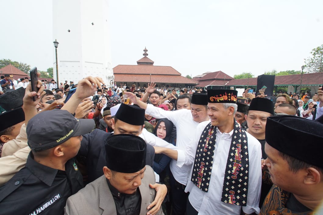 BANTEN (Awal.id) – Sholawat dari masyarakat yang hadir menggema menyambut kedatangan Ganjar Pranowo saat ziarah ke makam Sultan Maulana Hasanuddin di Banten, Minggu (28/5). Mereka begitu antusias saat calon presiden PDI Perjuangan dan PPP itu tiba di makam pendiri Kesultanan Banten sekaligus pelopor syiar Islam di tanah Pasundan itu.