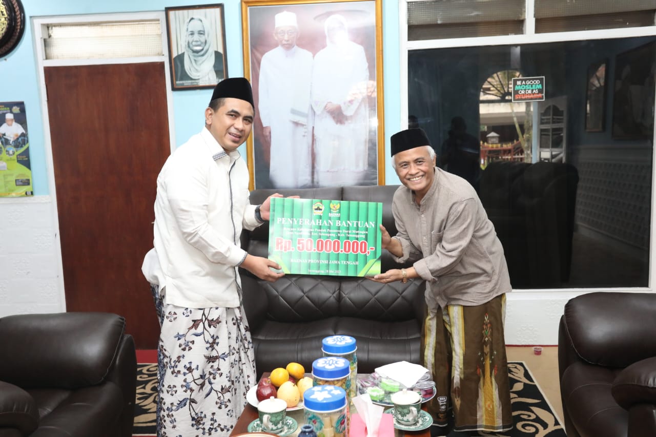 Selain memberikan semangat, wagub Taj Yasin juga menyerahkan bantuan dari Badan Amil Zakat Nasional (Baznas) Jateng sebesar Rp. 50 juta. Diharapkan bantuan tersebut dapat meringankan beban pengurus ponpes.