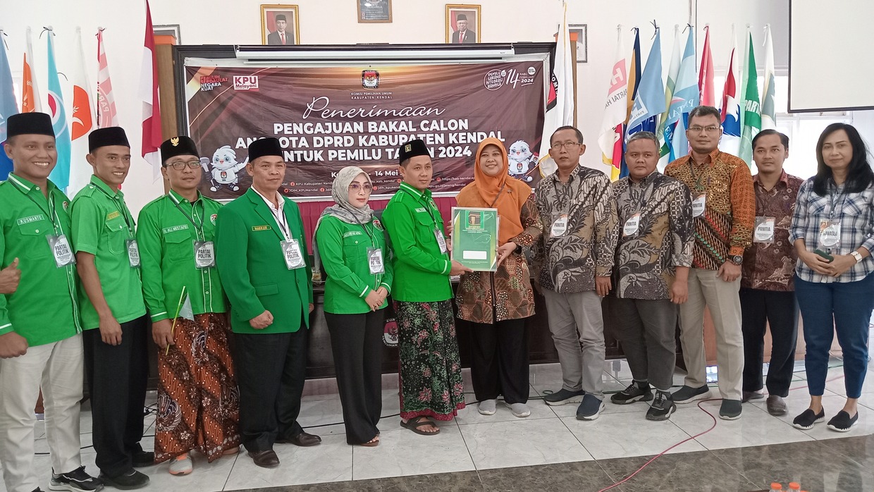 KENDAL (Awal.id) – Ketua DPC PPP Kendal, Abdul Syukur bersama bacaleg dan kader Partai PPP resmi mendaftar di kontestan pemilu 2024, Minggu (14/5/2023).