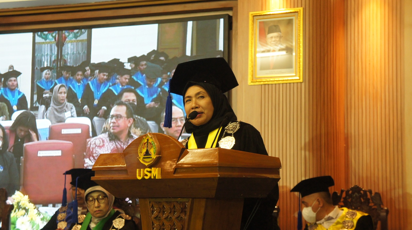Dia menyampaikan apresiasi dan selamat kepada civitas akademika USM serta para wisudawan terhadap penyelenggaraan Wisuda Ke-65.
