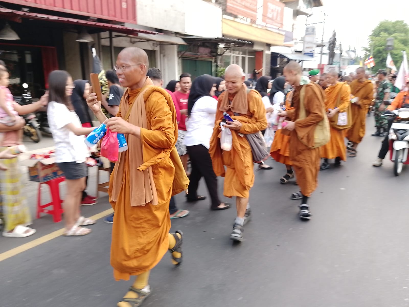 “masyarakat sangat antusias memberikan semangat kepada para biksu, bahkan warga juga memberikan minum kepada para biksu,” tuturnya.