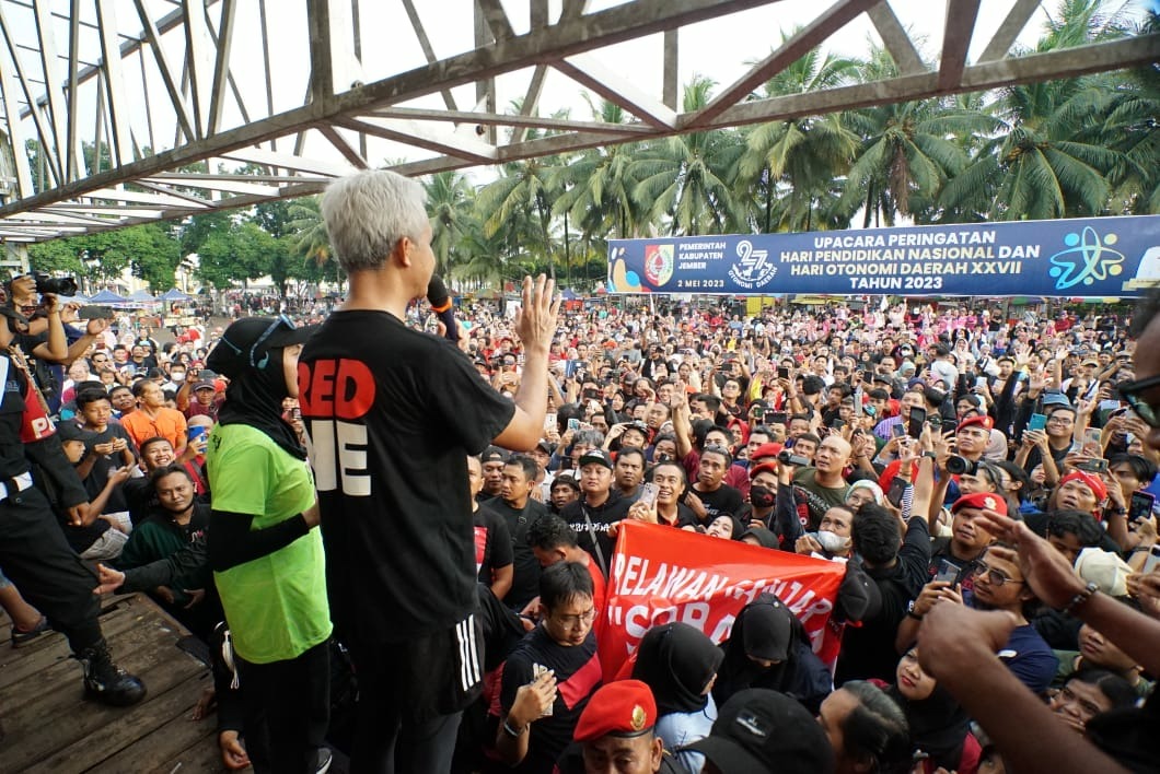 JEMBER (Awal.id) – Calon Presiden dari Partai PDIP, Ganjar Pranowo, hari ini berkegiatan di Jember, Jawa Timur, Minggu (7/5/2023).