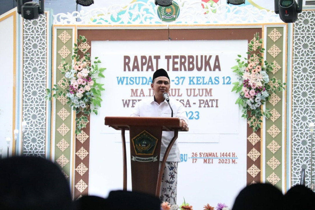 “Kita ini sebagai guru ya harusnya yang hati-hati. Kalau kita mau murid-muridnya bagus ya kita bukan hanya mengajarkan tetapi kita (juga) memberikan contoh,” kata Taj Yasin saat menghadiri Wisuda ke-37 kelas 12 tahun 2023 di MA. Ihyaul Ulum Kecamatan Wedarijaksa, Kabupaten Pati, Rabu (17/05/2023).