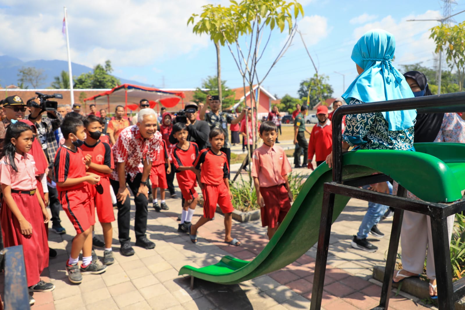 “Anak-anak bisa main di sini, itu dibuatkan panggung yang cukup bagus, anak-anak kita bisa melihat pemandangan yang bagus sehingga bisa dijadikan sebagai area atau space untuk orang bisa melakukan kegiatan,” kata Ganjar usai peninjauan.