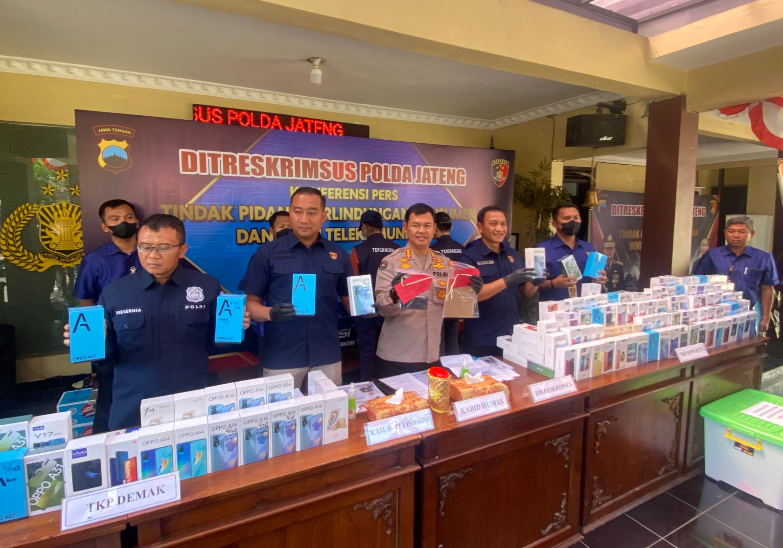 Dirreskrimsus Polda Jateng Kombes Pol Dwi Subagio menjelaskan pengungkapan kasus ini berawal dari petugas yang menemukan adanya konter handphone di Demak yang tidak memenuhi standar persayaratan teknis, yaitu tidak menempelkan label SDPPI (Sumber Daya dan Perangkat Pos dan Informatika) dari Kemenkominfo RI pada perangkat handphone sebanyak 36 (tiga puluh enam) unit.