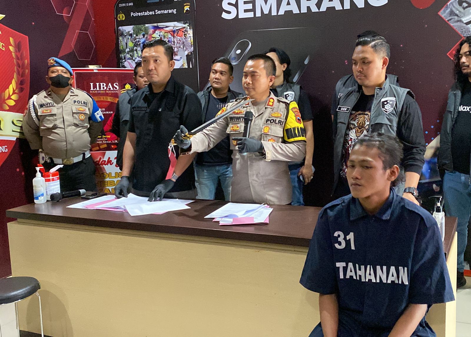 Wakapolrestabes Semarang, AKBP H. Wiwit Ari Wibisona, SH., SIK., MH menjelaskan awalnya tersangka datang ke kostel dengan membawa parang yang diselipkan di dalam celana tersangka.