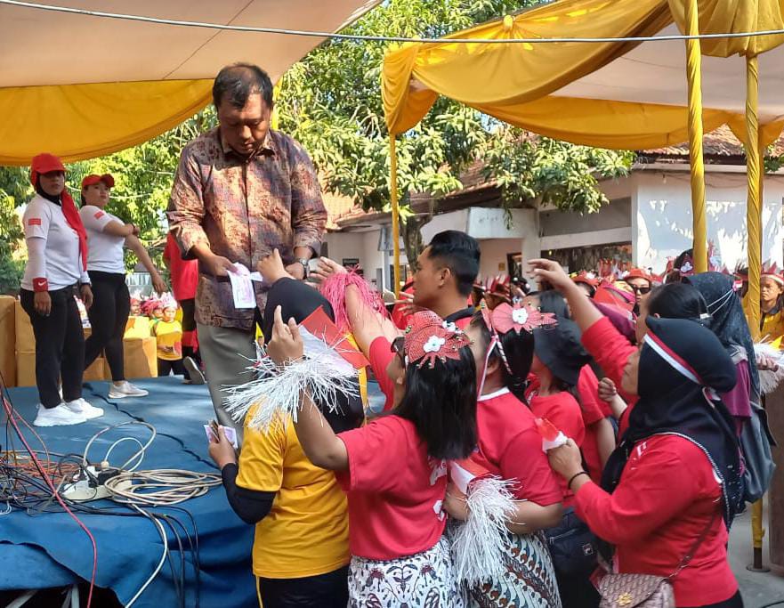 Yuyun menuturkan, jumal peserta sekitar seribu peserta yang ikut memeriahkan acara agustusan tersebut, mereka mengikuti tujuh lomba yakni merias wajah dengan mata tertutup, estafet tepung, memakai celana tanpa menggunakan tangan.