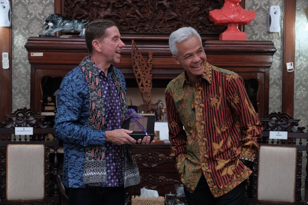 SEMARANG (Awall.id) – Gubernur Jawa Tengah, Ganjar Pranowo, bertemu dengan Bendahara dan Menteri Perdagangan dan Investasi Queensland, Australia, Cameron Dick, di Puri Gedeh, Jumat (11/8/2023) malam.
