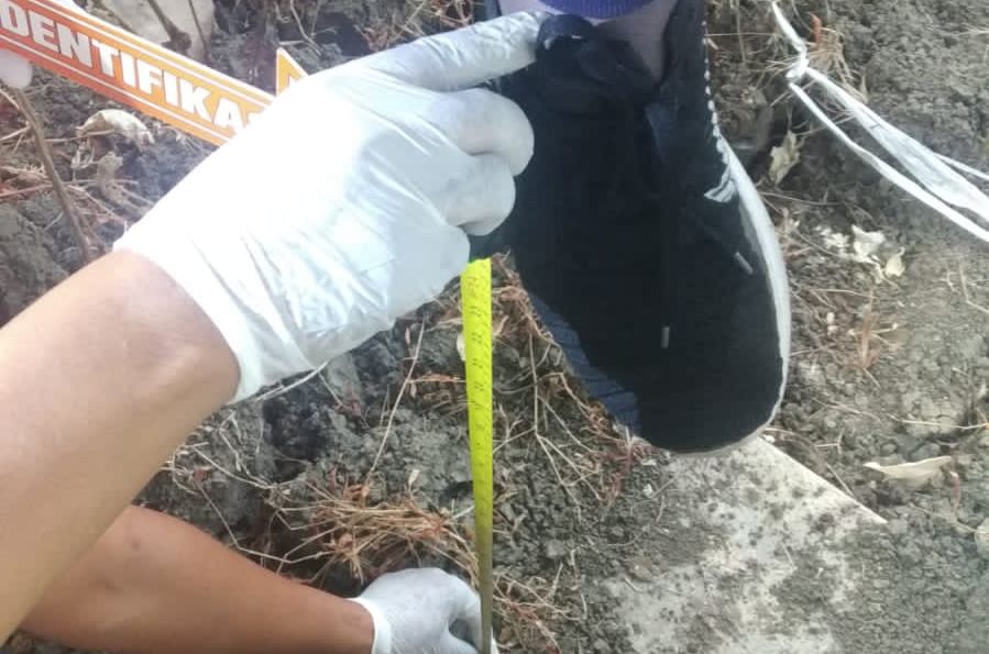 Saat ditemukan di Lapangan Tembak Mangunharjo Semarang, korban tampak memakai jaket kuning, bercelana training dan berspatu kets.